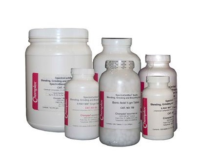 Chemplex® additives are formulated with the proper balance of abrasive and lubricious constituents that promote the grinding and pelletizing processes. The resulting sample pellets when the Chemplex® additives are used are characterized with unblemished smooth surface appearing “plasticized”. The Chemplex® additives are available in a variety of formats that make them very simple to use: bulk powder, pre-weighted ¼, ½ gram tablets and in liquid form.