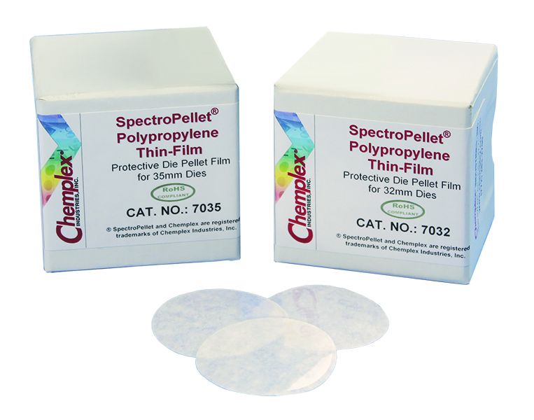 Each precut SpectroPellet® Film circle is supported on a paper carrier frame for convenience of handling and application. Available in three different sizes for use with: 32, 35 and 40mm diameter dies.